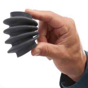 The Tango family of PolyJet photopolymers can simulate rubber with different levels of hardness, elongation, and tear resistance